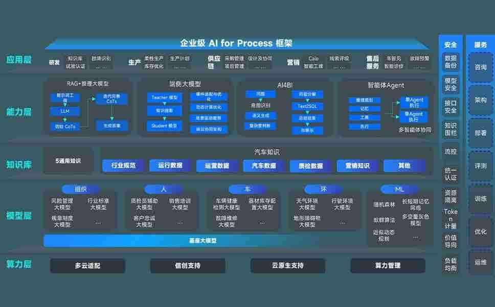 端到端的一站式AI工作空间深度融合了从企业战略规划到日常经营的全流程业务板块,,,,定向解决车企内部领域多、、、、部门多、、、链条长、、场景碎片化等难题,,,,支持车企快速构建以AI为核心的生产力写作体系,,,,实现任务执行与AI能力的无缝集成与交互